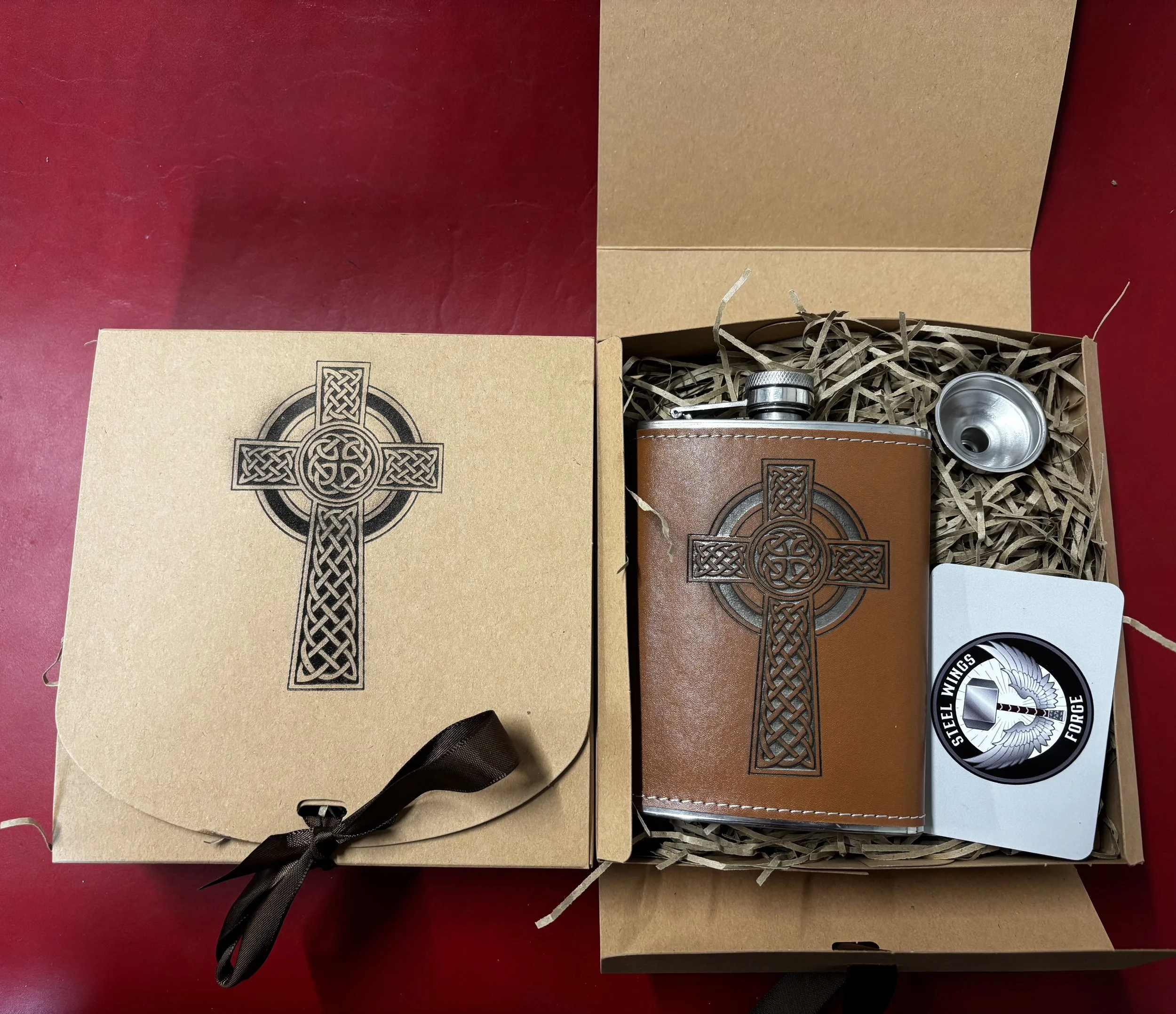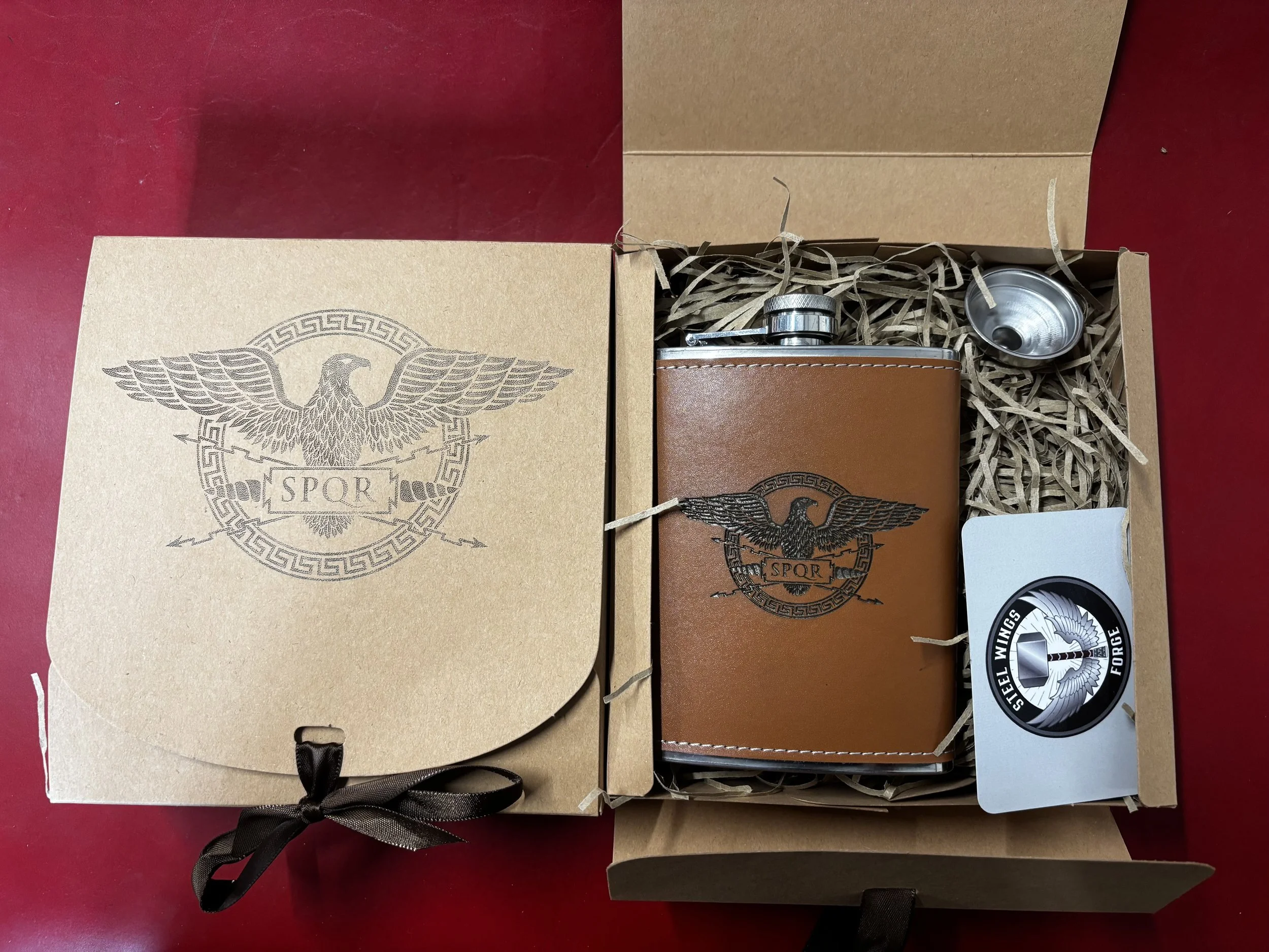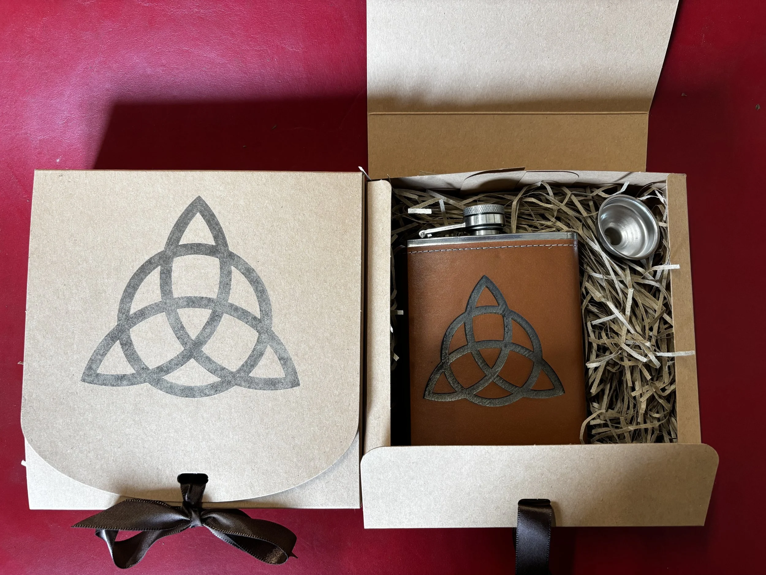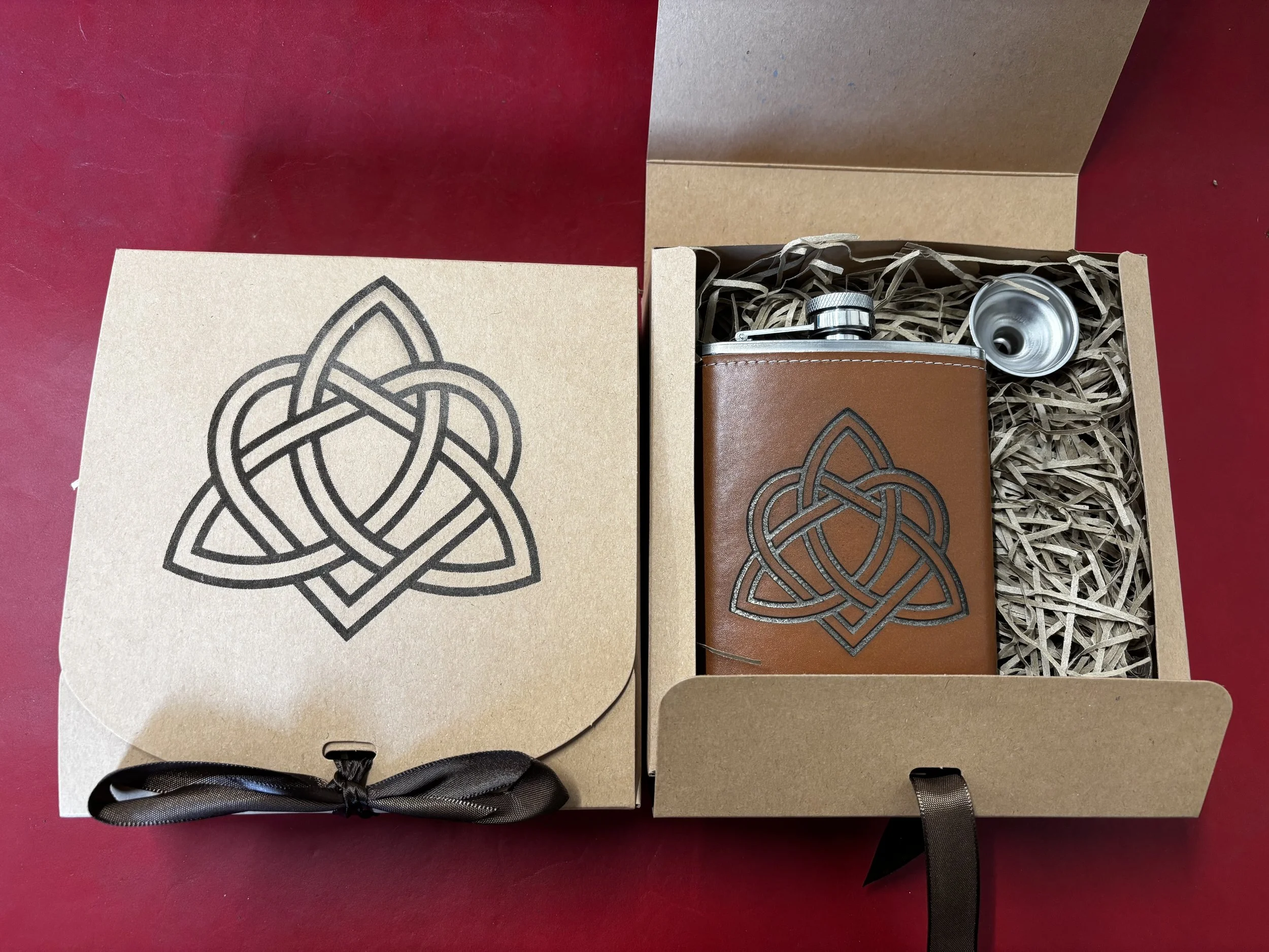 Each box comes complete with an engraved flask, funnel, and a brief description/ history of the artwork depicted on the flask and the matching box